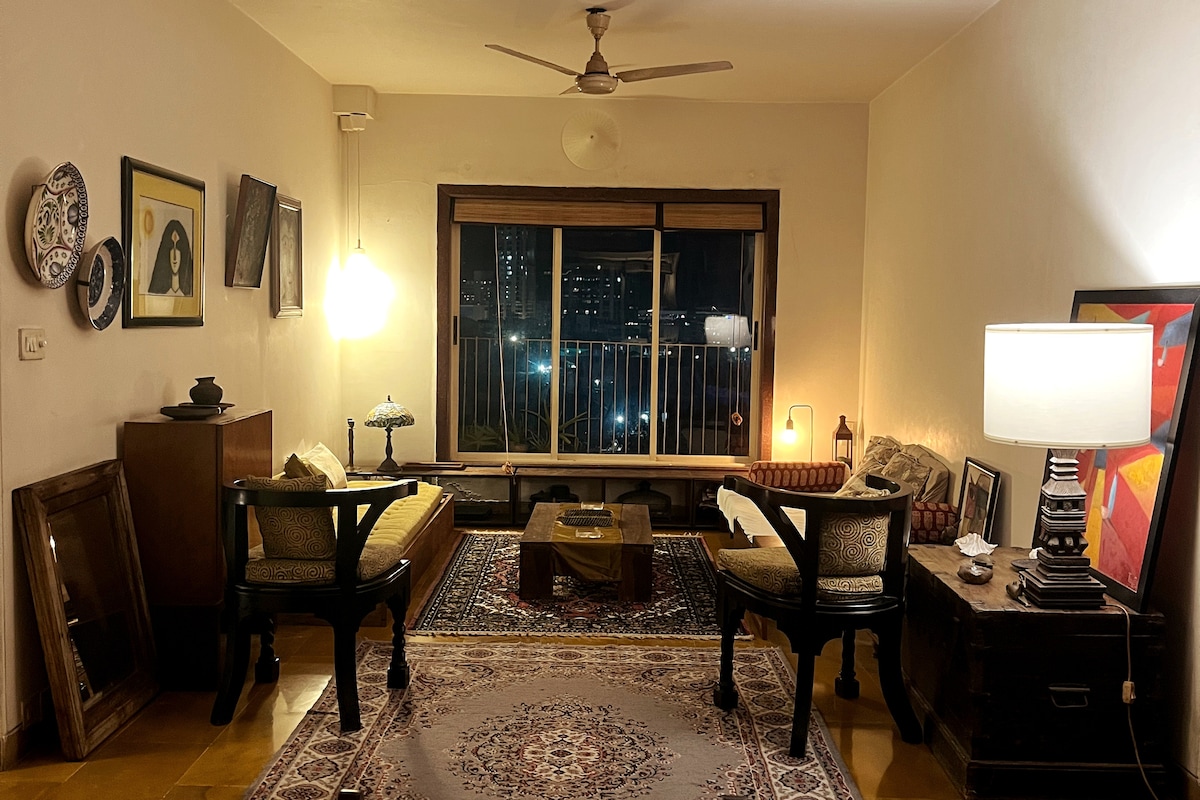 Welcome to the Bombay bollywood pad, This place is unique and peaceful in midst of bandra, I have been working in the field of bollywood since past 8 years, And this place is hand designed by me and my personal collectives are In it. Every element is either brought from chor bazaar or from someoneâs house or imported, This is a uniquely premium apartment equipped with all modern amenities for day to day use, It comes with a remote working setup as well.