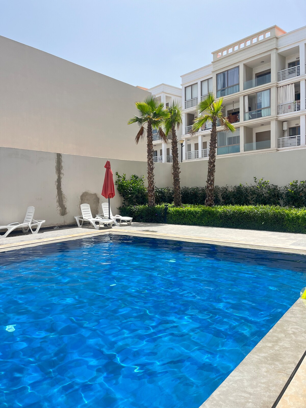 Welcome to our lovely apartment! Nestled just a short 20-minute walk away from the beautiful beach, it's a mere 5-minute drive if you prefer to take the car. For those keen on exploring, the train station is a convenient 5-minute stroll, making it easy to reach your desired destinations. You'll also appreciate the fact that Rabat is just a quick 20-minute drive away. A lot of people come here and say that they really like it. (La piscine est ouverte tous les jours sauf le lundi)