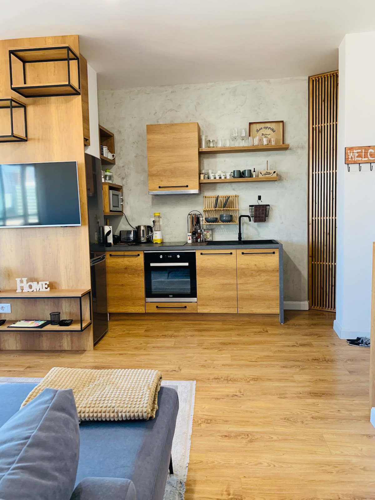 Perfectly located, this 2 bedrooms apartment with amazing views is perfect for your Tirana trip. The unit is equipped with everything you need to make your stay as comfortable as possible. You can always enjoy using the bbq grill in the 30 sq. meters terrace with amazing views. Our apartment is walking away from city center, myslym shyri street,museums, blloku area, bars, shops, cafes, nightclubs, musuems. A great location for you to discover Tirana the best way. We look forward to hosting you!