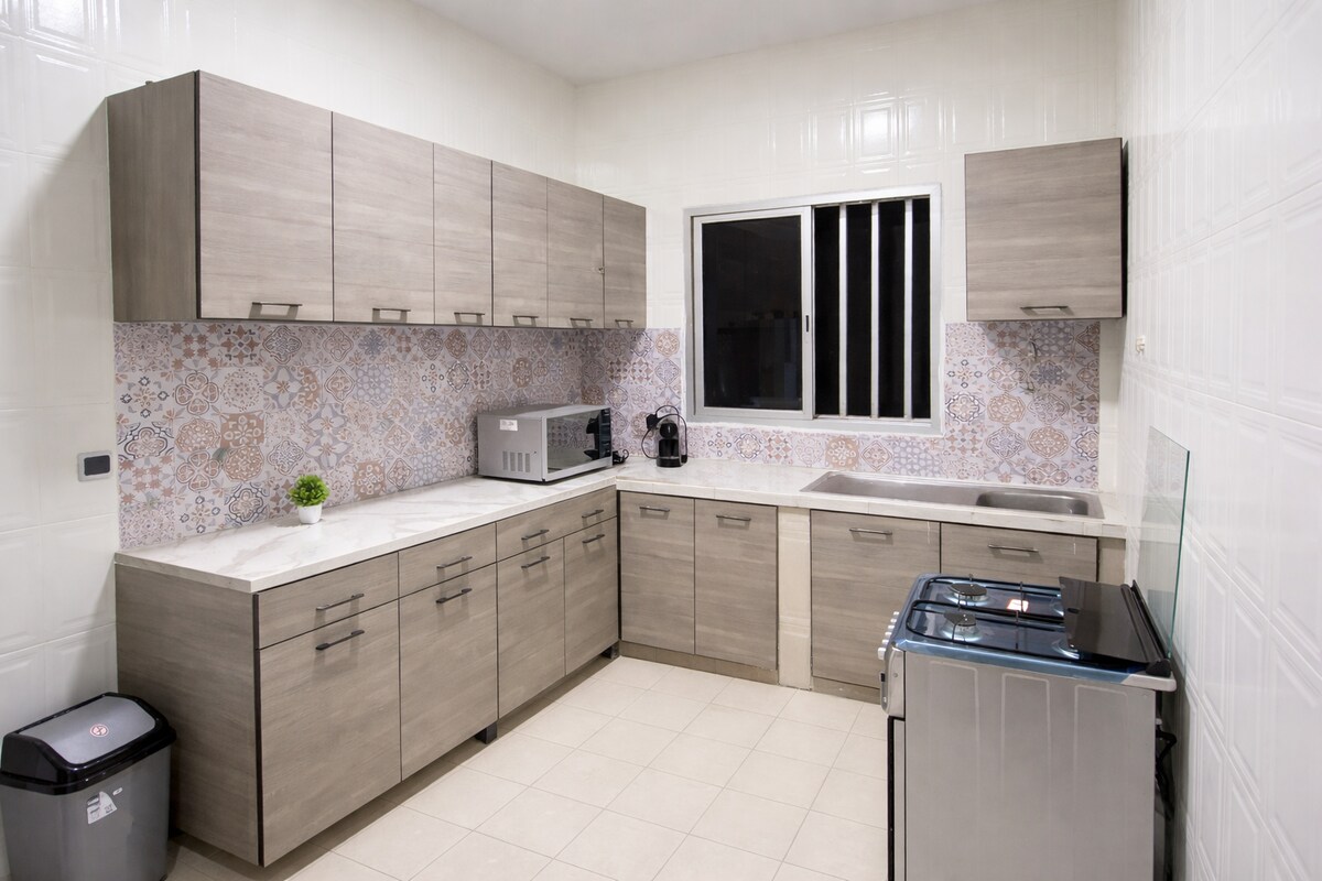 Spacious & Comfortable 3 beautifully designed bedrooms with air conditioning in bedrooms & living room. Hot water in bathrooms. Family with kids will love the place. Fresh linens and towels come sealed from the cleaning company. Wi-Fi, peaceful environment. Fully Equipped Kitchen, whether you love to cook or just need a quick meal, the modern kitchen has everything you need. Private parking, Generator for uninterrupted power, washing machine. Self check-in with code provided.