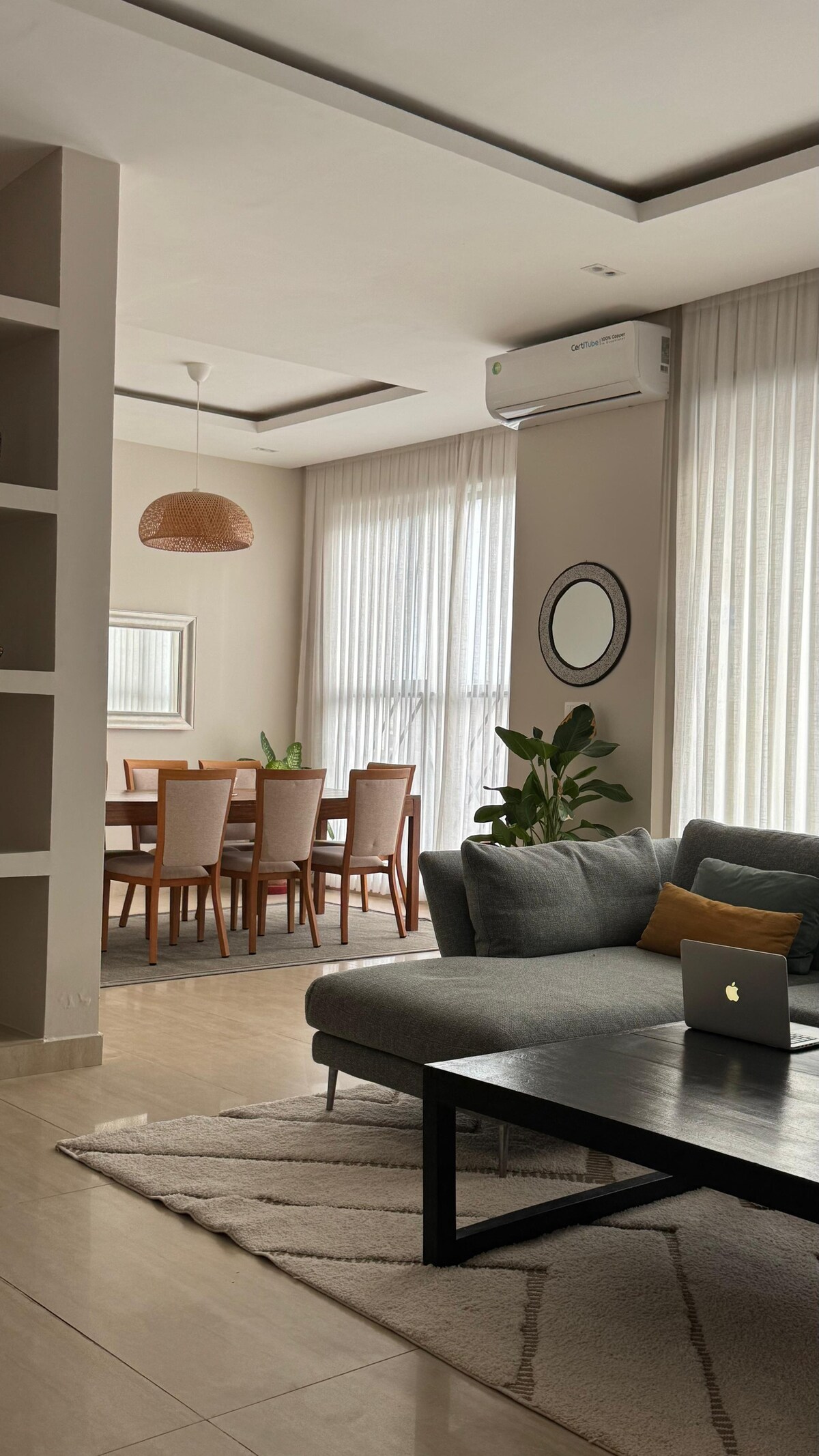 Relax in this quiet and stylish space close to all amenities. You'll enjoy. •Comfortable and beautiful living room with smart TV and wifi • Functional American kitchen equipped with all the necessary accessories •Bedroom equipped with mini living room and bathroom • 7kg washing machine •Terrace ideal for relaxation Apartment located on the 4th floor (no elevator ) in a quiet and secure new building (24-hour caretaker) in an ideal and accessible area.