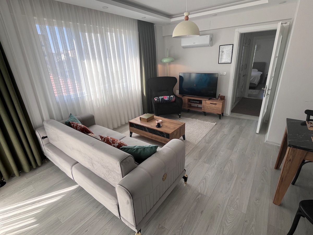 Enjoy your vacation in the comfort of your home! With its central location, fully equipped kitchen, spacious living spaces and modern design, our apartment offers you both freedom and comfort. Whether you stay with your family or friends, you will feel at home. Our apartment, which is within walking distance to the market, restaurants, and shopping points, awaits you for a peaceful and enjoyable vacation. We also have airport transfers and car rental services. Don't forget to get an offer from us 😊