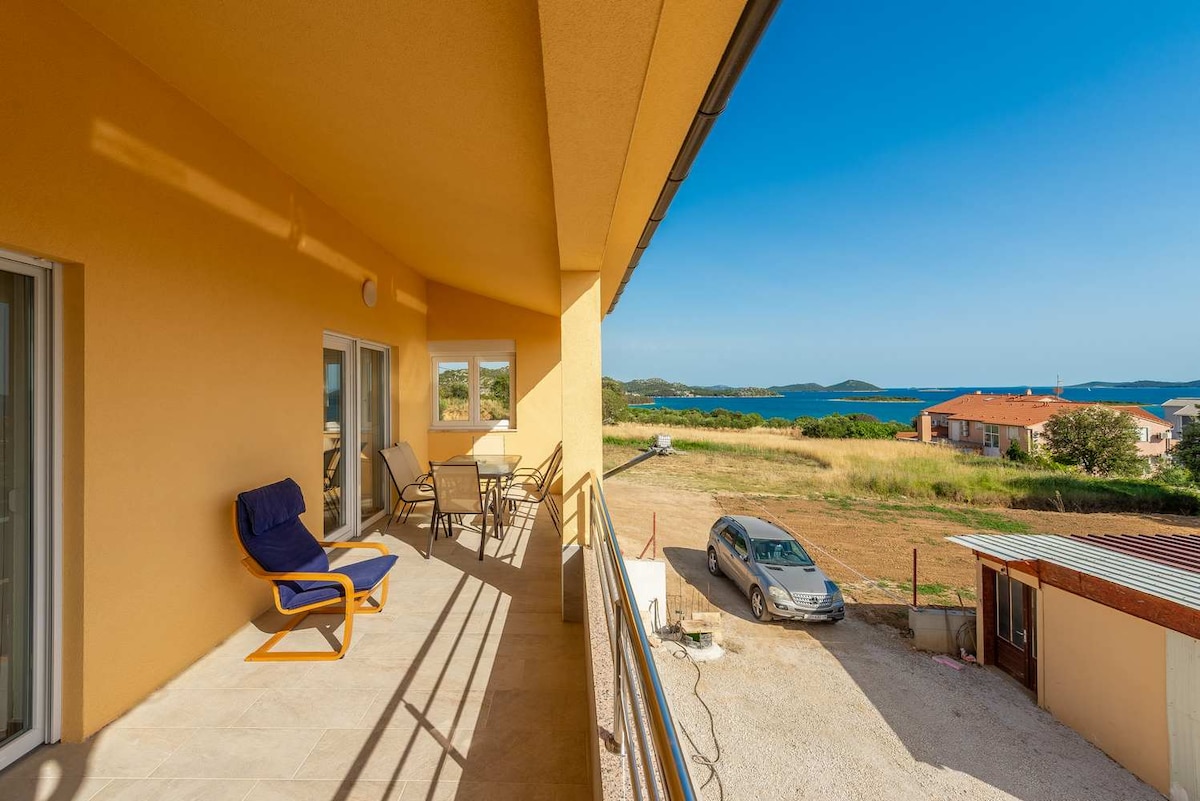 Luxury beach front apartment on 2.floor of new built villa placed directly at beautiful beach in Sukošan. This modern apartment is fitted for up to 4 people. Spacious wood decked balcony provides amazing sea view. This is a perfect gateway for your romantic holiday on beach. Enjoy in warm summer night lazing on loungers, watching shiny stars and listening the sound of sea waves below you.