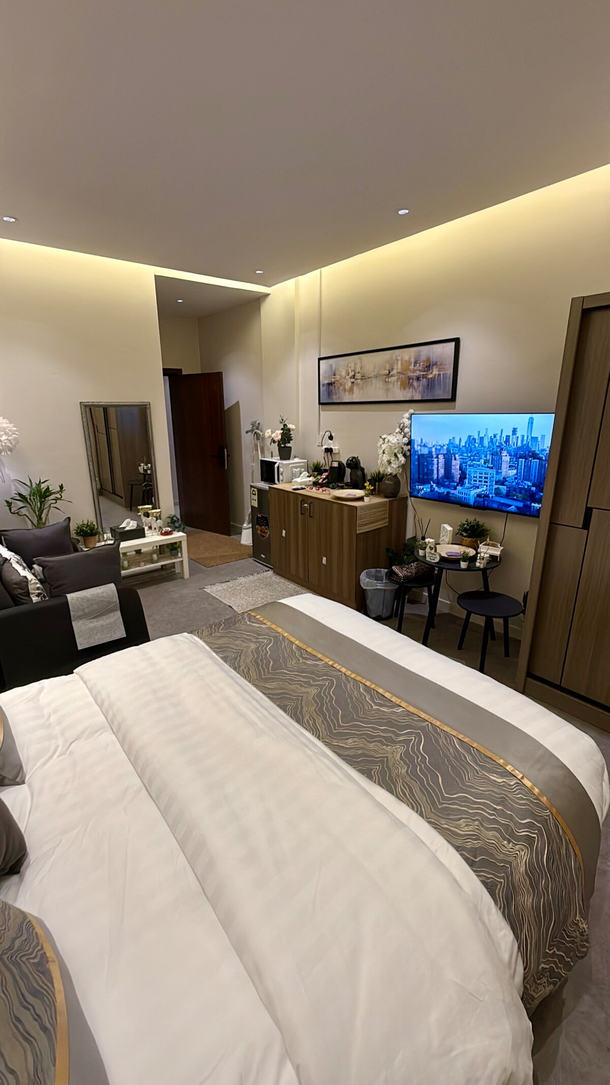 نوفر لك إقامة فريدة وراقية يتم فيها توفير جميع وسائل الراحة التي تستحقها، ونقوم هنا بتوفير وسائل الترفية من اشتراكات Netflix وShahid ، كما تحصل هنا على الخصوصية التامة وتسجيل الدخول الذاتي، في موقع مميز وقريب من جميع الاماكن السياحية والخدمية.