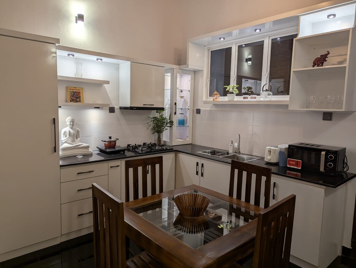 Experience boutique style luxury in this super beautiful architecturally designed home just 15 min from the airport. Enjoy two stylish double bedrooms, elegant living area with modern comfy seating , dining area, kitchen, modern bathroom & a peaceful garden. In a quiet area yet only 5 mins to Negombo town, beach, restaurants, and shopping. This spacious unit with Wi-Fi & AC is ideal for couples, friends, families or solo travelers seeking comfort, privacy, convenience & a truly relaxing stay.