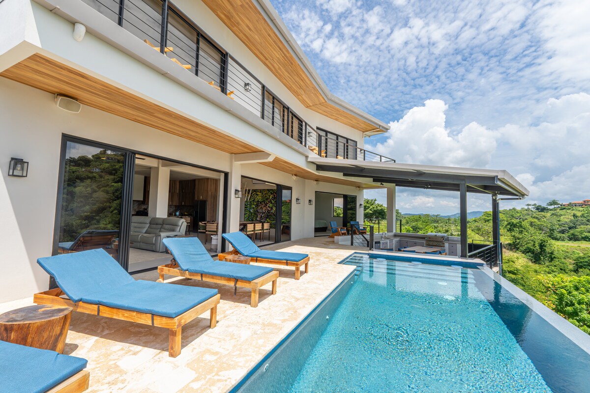 LUXURY VILLAS PURA VISTA WITH A GORGEOUS OCEAN VIEW!! Welcome to elegant Villa Pura Vista! This wonderful tropical villa is located in the prestigious la Marcela gate community, ( 24 hrs guard ) A spectacular VIEW. home set high up on a hill overlooking several pristine beaches, Catalina Islands, night lights and the Flamingo marina, Potrero Beach bay. Secluded, yet within minutes of beautiful beaches Like Playa Danta, Playa Potrero, Playa Penca Playa Flamingo, Playa Conchal,