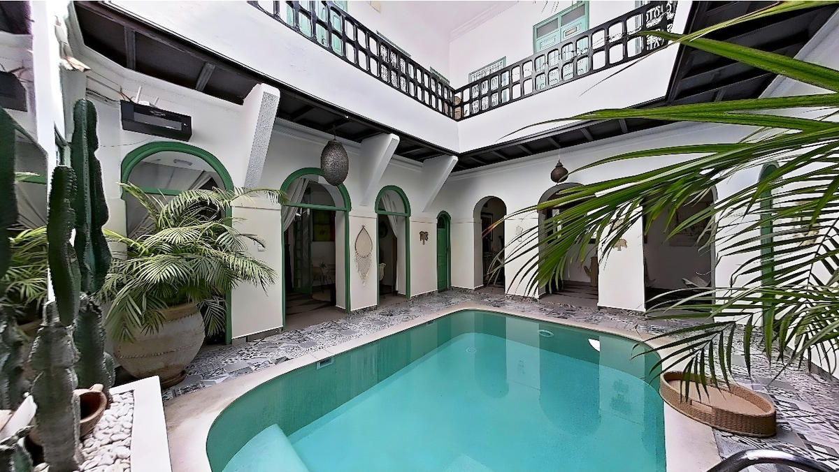 Riad Dar Num was fully renovated in 2023 in order to offer you an exceptional stay in the heart of the of Marrakech Medina. The riad offers more than 320 square meters of living space with 4 bedrooms, 5 lounge areas, 2 kitchens, 3 terraces, and a heated swimming pool. A few minutes walk from the Jeema el Fna square and. the souks entrance, it has direct car access and a parking 80 meter away. Daily breakfasts, rooms cleaning and concierge service are included.