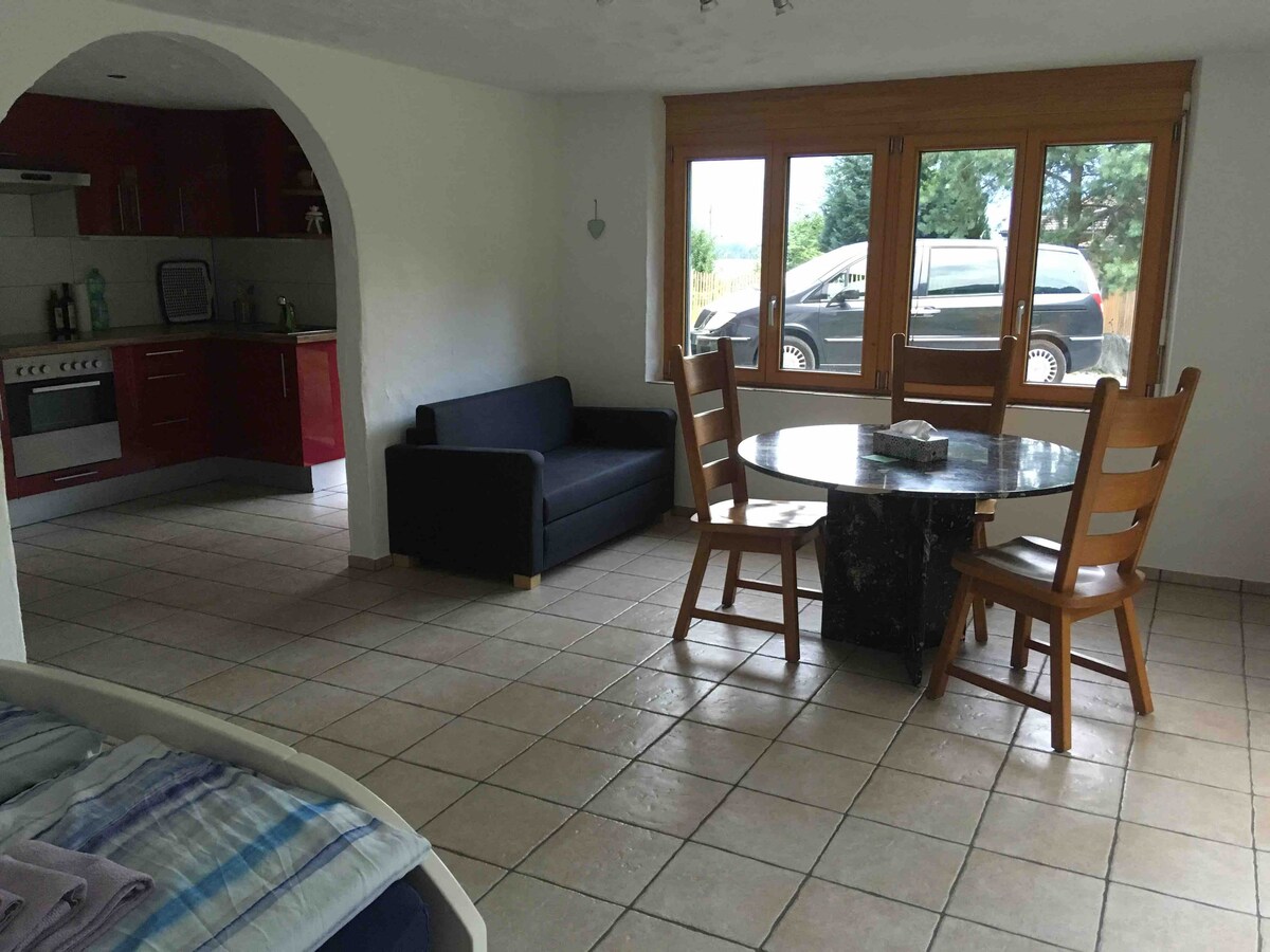 separate studio/apartment for 2 person with double bed in Interlaken, in a new built house, high standard, with Jungfrau Montain view in garden. you have also patio to relax in. the area is quite, secure and peaceful. Parking place is in front of house and for free.