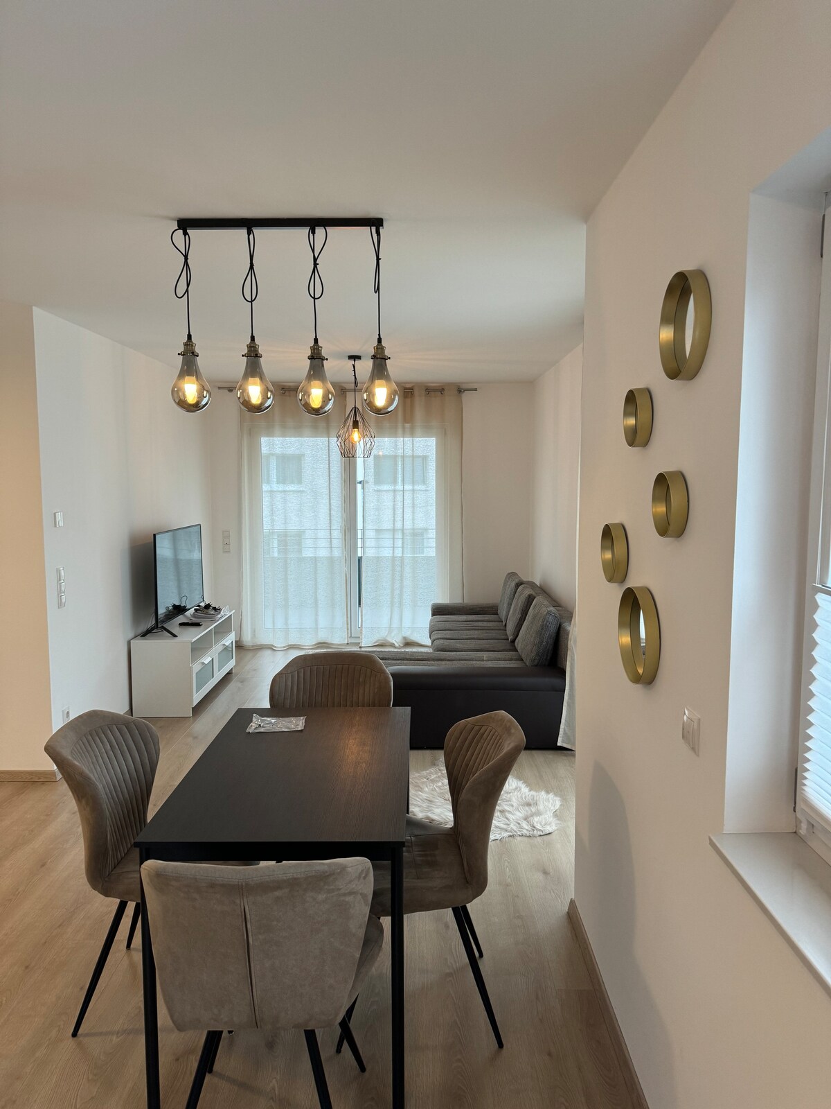 NEST NO.1 - a bright ambience in a clear feel-good design. On more than 110 sqm the guest can expect a spacious dining area, 2 cozy bedrooms with large double bed, a sunny kitchen, a daylight bathroom and a separate guest toilet. Our large living room invites you to linger on the large sofa. The terrace with a small garden offers additional space and in the evening you sit there and enjoy the last ray of sunshine and let the day end. Frankfurt airport: 28km, Frankfurt fair 37km.