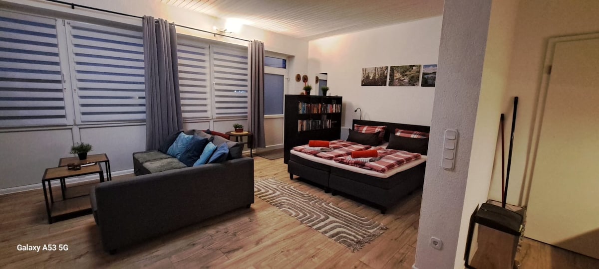 The apartment is in Daun, OT Pützborn, in a quiet location. The footpath to Daun goes uphill. In the village is the Wild-u. adventure park and REWE (open until 10 pm). The Volcanic Eifel, known for its maars, has many beautiful hiking and cycling trails. The Eifelsteig is nearby. The Kosmosradweg [bike path] provides easy access to the Maare-Mosel bike path. The Nürburgring and all sights can be reached by car. Daun-Senheld Airport offers sightseeing flights over the maars, the Mosel or the Nürburgring.