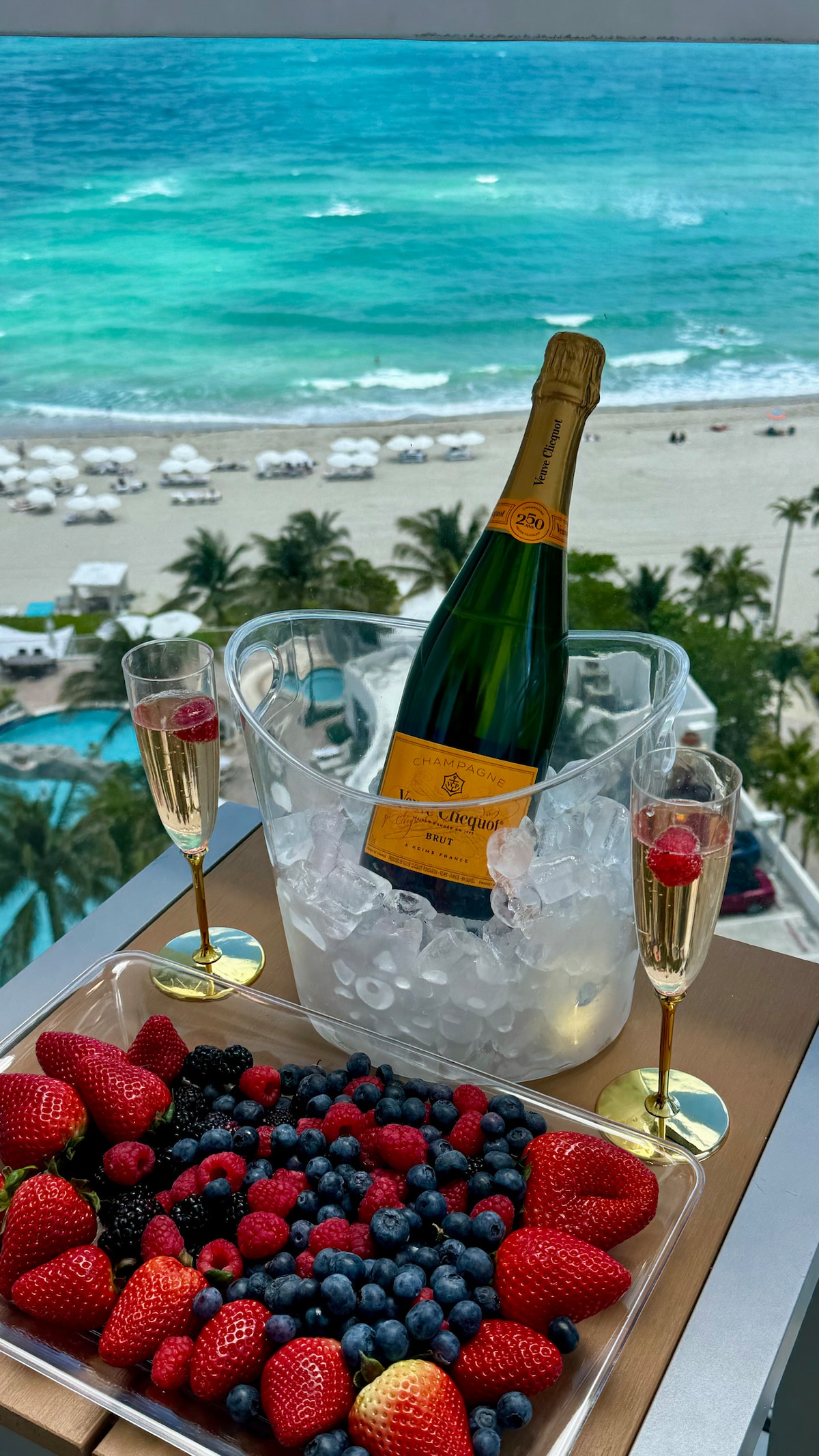 Exclusive Deluxe Oceanview Studio – 11th Floor With Private Balcony 🏖️ Sunny Isles Beach | Luxury Beach Resort: 18001 Collins Ave . •Full shower & tub in spacious bathroom •Completely renovated with unique design •Only 2 rooms like this in the entire resort with COMPLEMENTARY WET BAR fully loaded alcoholic beverages and more •Sleeps up to 4 guests: 2 Queen size Beds •Privately managed 💳 Trump hotel-Resort fee: $135/day + 7% tax (includes 2 cards PER ROOM and Use Amenities)