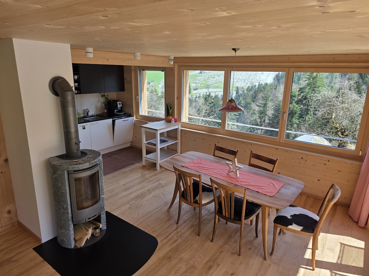 Relax in the cozy, bright apartment in the new, energy-efficient solid wood house with a wood-burning stove and balcony. The apartment is well equipped and offers almost everything your heart desires! The fantastic, sunny location with beautiful views of the countryside offers peace and quiet. The famous Herzroute (e-bike) leads right past the house, and beautiful hikes are also available! The landlord couple lives in the ground floor apartment, chickens, ducks, geese, cats live around the house.