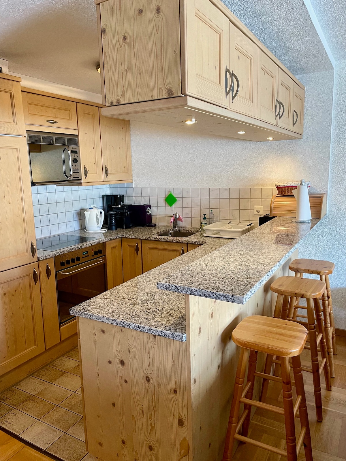 Enjoy your mountain get-away in our cozy yet modern apartment in the Peaks-Place. It's located only a short walk or shuttle ride from the Laax ski station and has all the amenities you need: Store your equipment conveniently in the ski room, relax at the pool or in the sauna after a day on the slopes, and enjoy the wonderful views from the balcony.