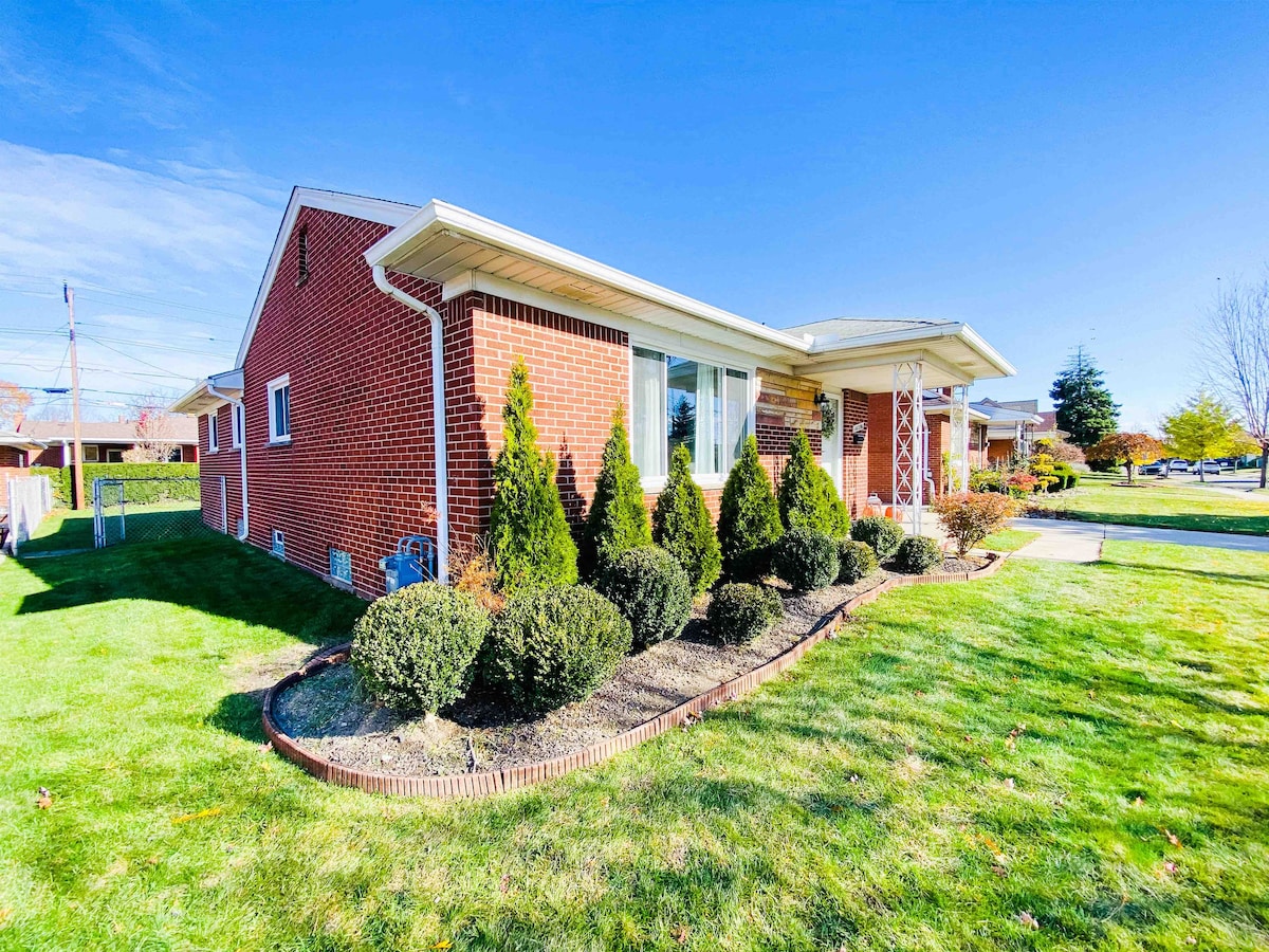 ★ #1 Airbnb in the Dearborn area ★★★★★ #1 Superhost in the Detroit area ★★★★★ Nestled in the heart of Dearborn, on a charming neighborhood block, this fully furnished ranch promises to be a home away from home. You will be able to enjoy 2 full kitchens, 2.5 baths, 3 bedrooms, 2 large living rooms, a 2.5 car garage, all necessary major and small appliances, as well as home WiFi and cable TV. A large backyard and a huge driveway accompanies this beautiful home for extra outdoor space.