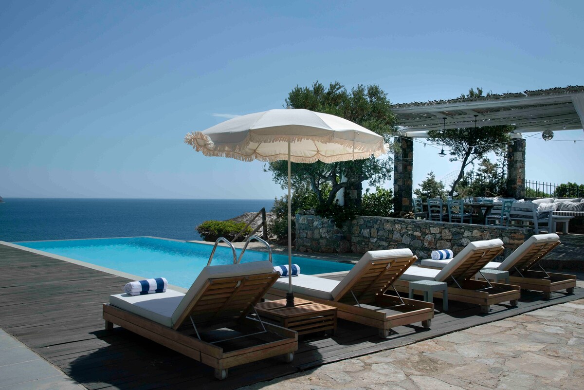 DioNysos Boutique Villa (by AmaZeus Group) A luxurious villa designed, built, and finished to the highest standards, just 20(!) meters from the sea. This earth-sheltered property embraces sustainable architecture and design, harmonizing with the natural elements of its surroundings to create a serene atmosphere of modern luxury. With clean lines inspired by minimalism, the villa reflects the sunlight beautifully, offering a setting where nature takes center stage