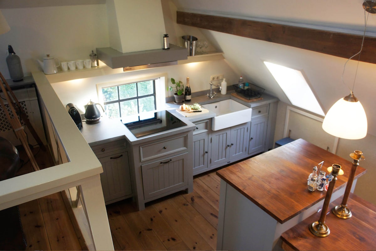 A stylish cabin dream! This studio looks out into the woods, from an elevation of 1,5 metres, is part of a family estate, & sits at 60m away from the road to the village of Vierhouten. It's not a simple holiday let, but rather a luxurious and comfortable zen suite with a stunning view. With vast woods and heather on your doorstep, one of the most beautiful of the Veluwe region if not The Netherlands. Endless magical forests with a special kind. A four season dream location.