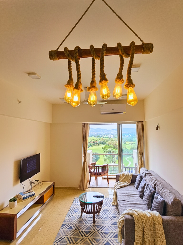 Escape to Zen Vista, a serene 1BHK retreat overlooking lush golf greens. The home features a bright living room with smart TV, a cozy bedroom with balcony access, and a modern bathroom. The compact kitchen includes fridge, microwave, and kettle for a homely stay. Guests enjoy high-speed WiFi, lockbox self-check-in, and access to secure walking trails. Perfect for business travelers, couples, or families seeking comfort, calm, and convenience near Pune’s prime hubs.