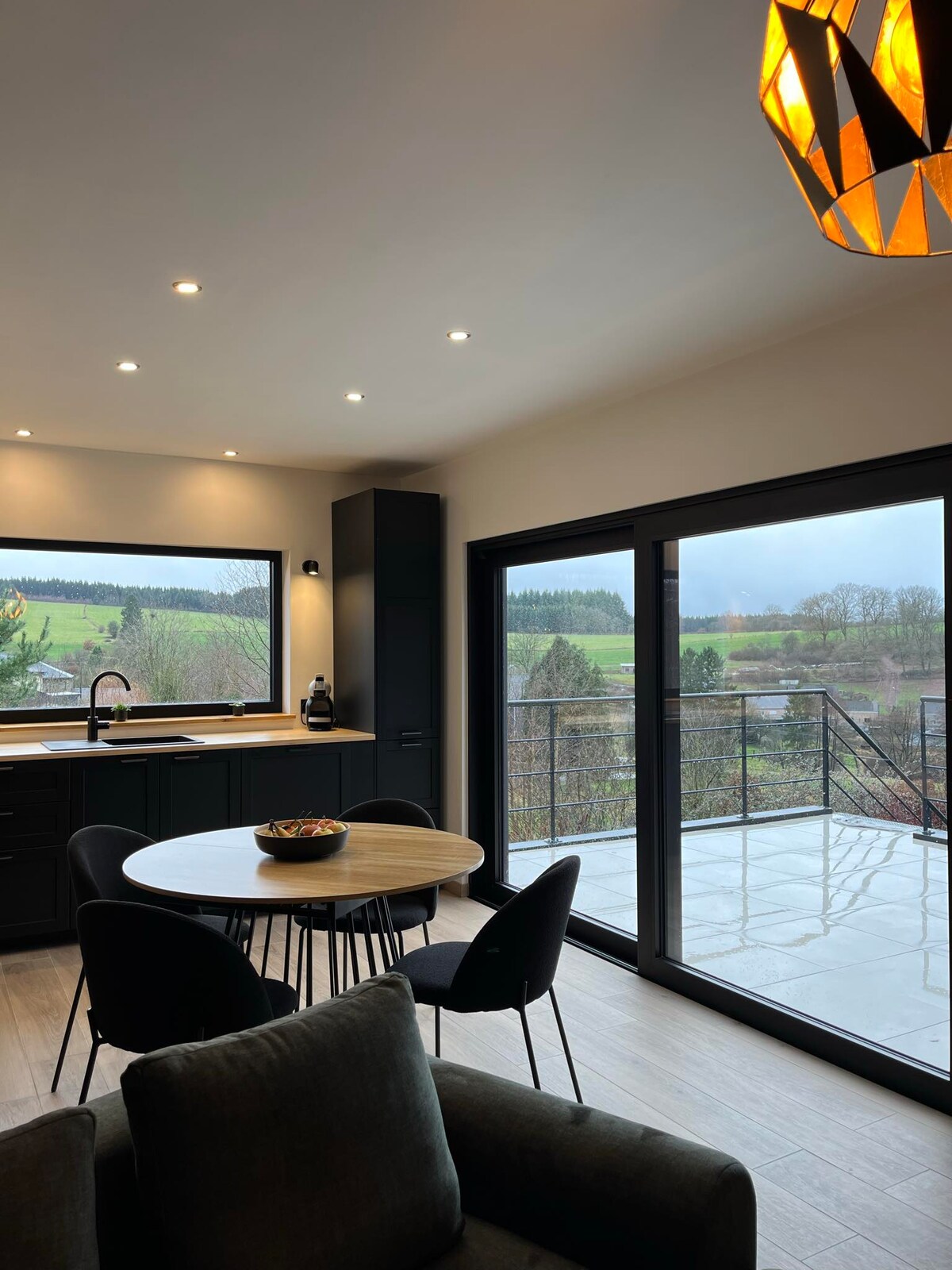 In a quiet place in the heart of the Ardennes, you can stay with us in silence and luxury. Our gites are built sustainably with a high-quality finish of natural materials. We are happy to welcome you in our accommodations that are equipped with a king-size bed, walk-in shower, equipped kitchen (dishwasher, Nespresso machine), air conditioning and wood stove. Enjoy your own wellness with our outdoor sauna and Jacuzzi, completely private with magnificent views of the Ardennes hills.