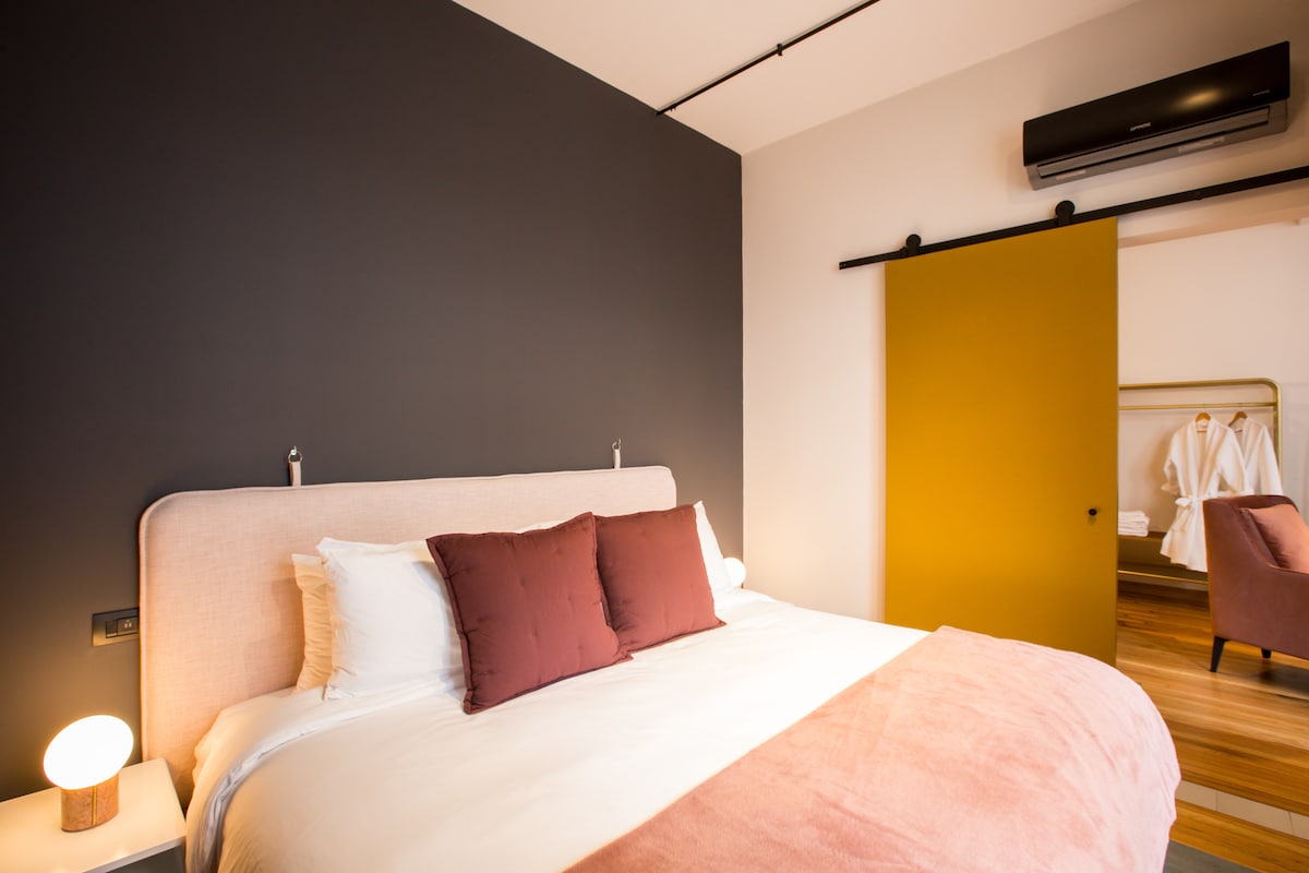 Our modern studio apartments by VIATO HOMES in Nomad Living are designed to maximize comfort and functionality in an open, contemporary layout. Each unit features a cozy sleeping area, full bathroom, compact fully equipped kitchen, and a stylish living space that’s perfect for business travelers, couples, or solo guests. Guests also enjoy access to building amenities including the gym, pool, coworking hub, and BBQ area, all within a secure building with 24/7 concierge and parking availability.