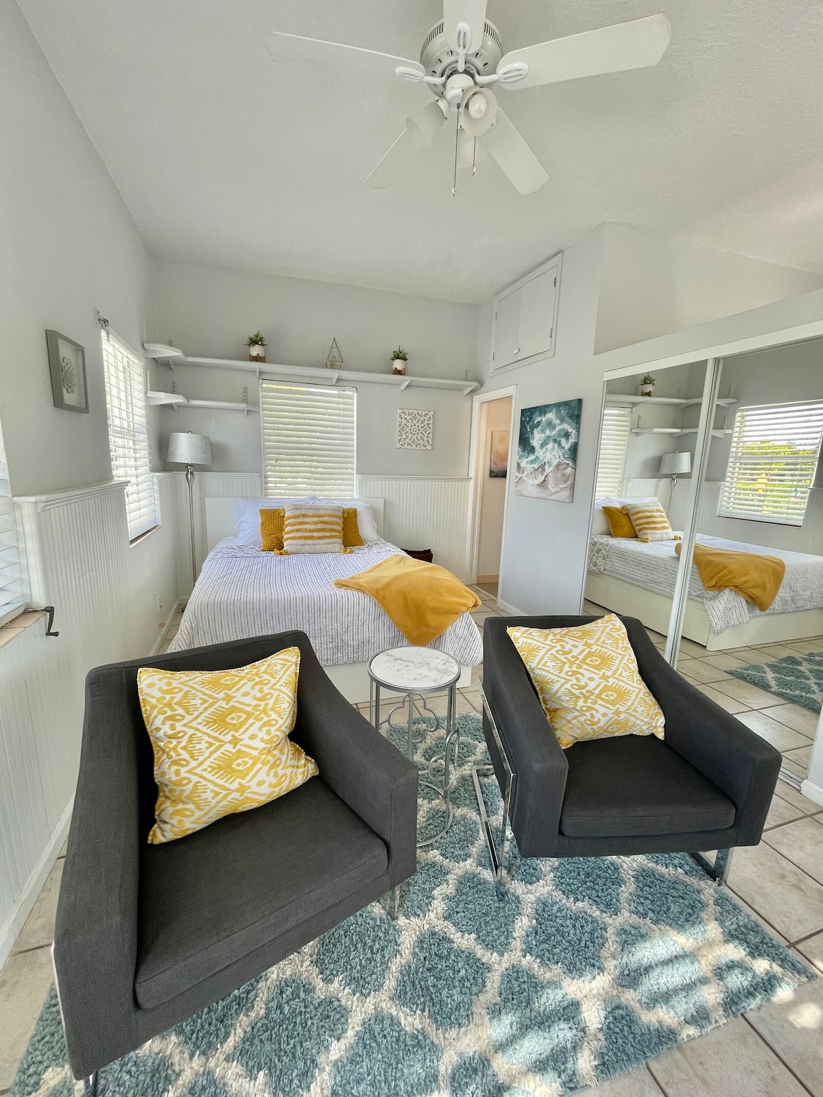 Take it easy at this unique and tranquil getaway. Mango Groves Beach Bungalow is a charming, historic tropical gem hidden in the middle of artsy Lake Worth Beach. Just updated, this immaculate 1 bed / 1 bath is bright, spacious & super cozy with a beautiful courtyard to enjoy the sunshine. A 15 min walk or 5 minute bike ride to the beach. Enjoy a plethora of amazing food and nightlife all just steps away. Grill, fire pit, beach cruisers, laundry & more!