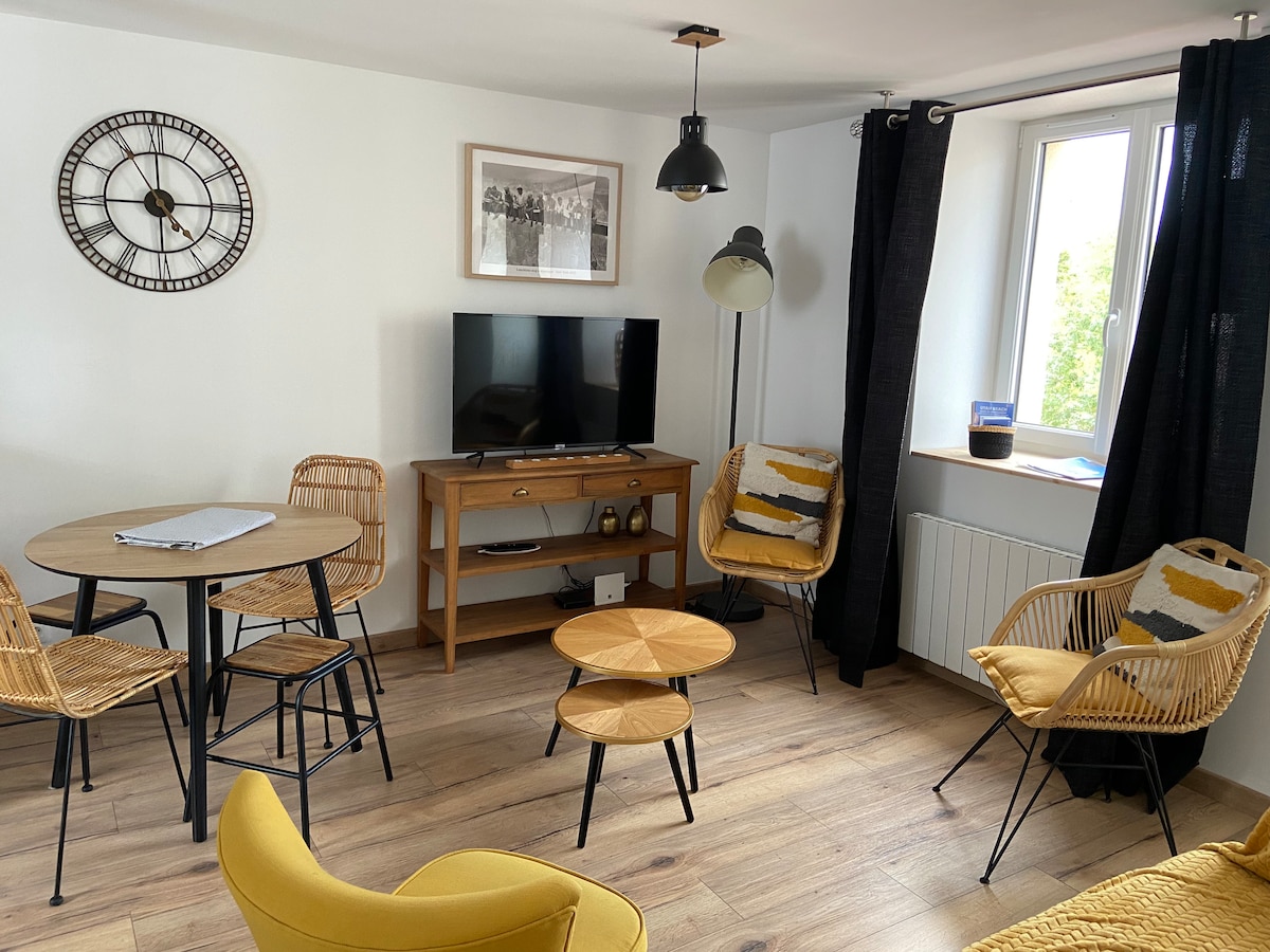 Charming refurbished studio. It has a real sleeping area with a queen size bed (160 x 200). A fitted and equipped kitchen. Smart TV with Netflix, Prime Video and Molotov account provided. To make your night or stay more enjoyable, bed linen and towels are provided. Guests can also relax in the small private garden that is not overlooked and equipped with a charcoal barbecue. Parking in a closed private courtyard with a gate.