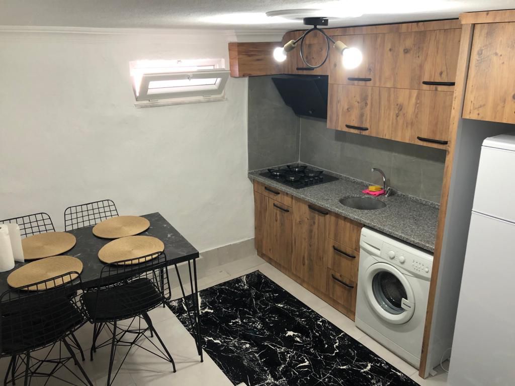 Evimiz 1+1 şeklinde yaklaşık 53m2 büyüklüğündedir. bahçede oturma alanı ve mangal malzemeleri mevcuttur. Yatak odası: 1 duble yatak 1 adet açık dolap makyaj masası ve sandalyesi mevcuttur. Salonda açılabilir köşe takımı bulunuyor . Mutfak; açık mutfak salon ve tüm temel malzemeler mevcuttur . 1 adet tuvalet banyo mevcuttur. 2 kişi için rahat bir konaklama hizmeti sunuyoruz.