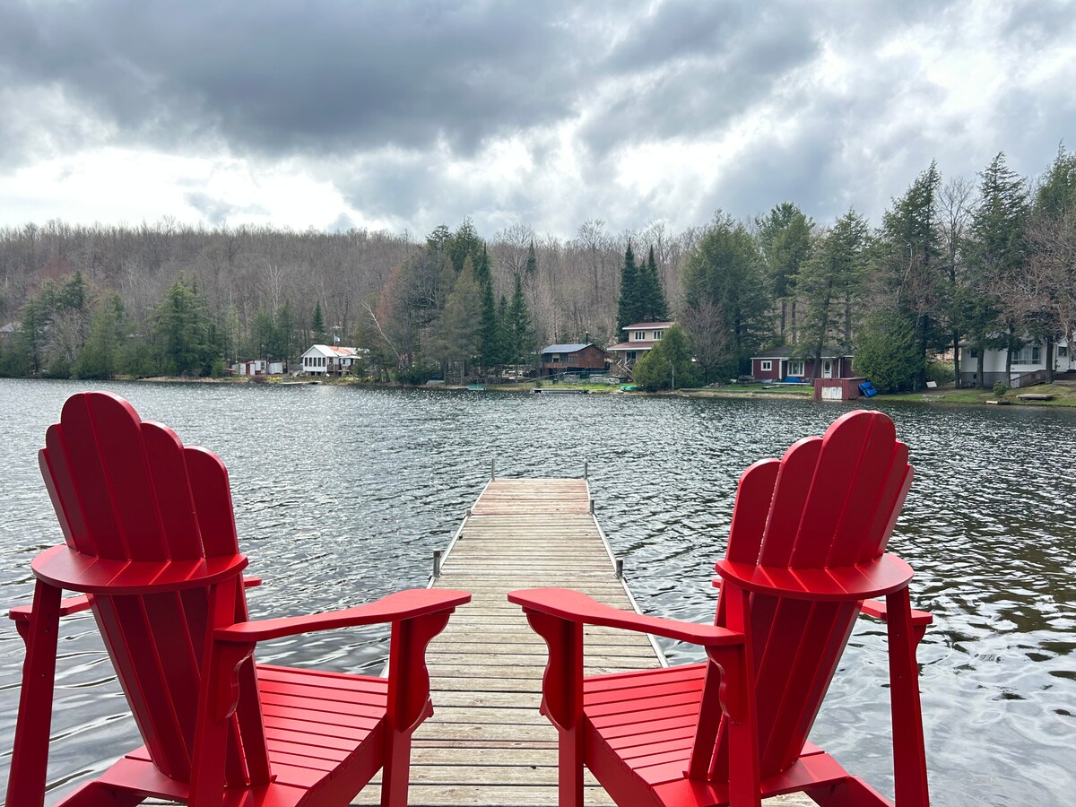 Perfect nature retreat in the heart of the Laurentian. Discover this unique Canadian log home built by local prestige company Harkins. Peaceful clear water lake directly in front of this hidden gem. ♦ Indoor wood fireplace next to comfy living room & smart TV ♦ Two Spacious Bedrooms with King & Queen bed ♦ Private Natural Lake Access ♦ Balcony with BBQ. Fire Pit ♦ Pure intimacy, no neighbours close ♦ Work desk and Wi-Fi