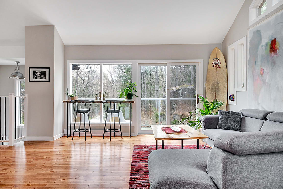 Enjoy this beautiful log cabin located on the waterfront. You won’t be able but to unwind in this rustic and unique location, whether sitting in front of the fireplace or relaxing in the spa. The cottage offers a magnificent view of the mountain side as well as the Pelletier River, which connects with Du Lièvre River. located on Quebec’s federated ATV and snowmobile trails. You’ll be pleased in any season.