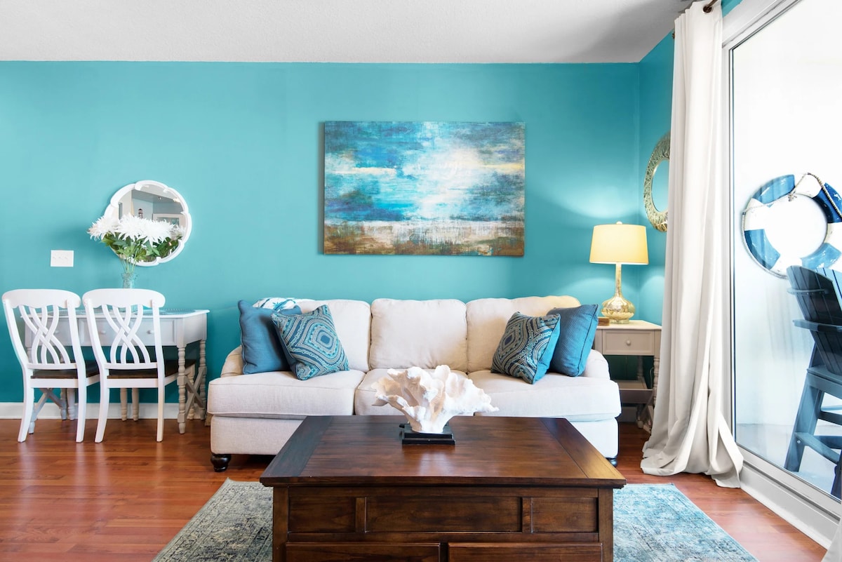 Welcome to The Salty Pirate, your waterfront vacation paradise! Kick back & relax in our calm, stylish condo featuring a king size bed, luxury bathroom & kitchenette. Relax in bed, enjoy the boats cruise by or watch the 65 inch TV. The waterfront balcony entices you to read & relax. Enjoy the resort style pool or reserve the 2-seater kayak (when available) provided for you to explore the waterway. Downtown restaurants & bars are walking distance & the white sugar sand beaches are 2 miles away!