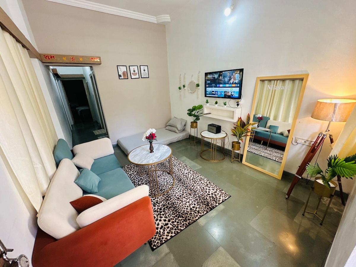 Luxe Earthy Cozy 1BHK | 43 inch SmartTV, Wi-Fi, AC