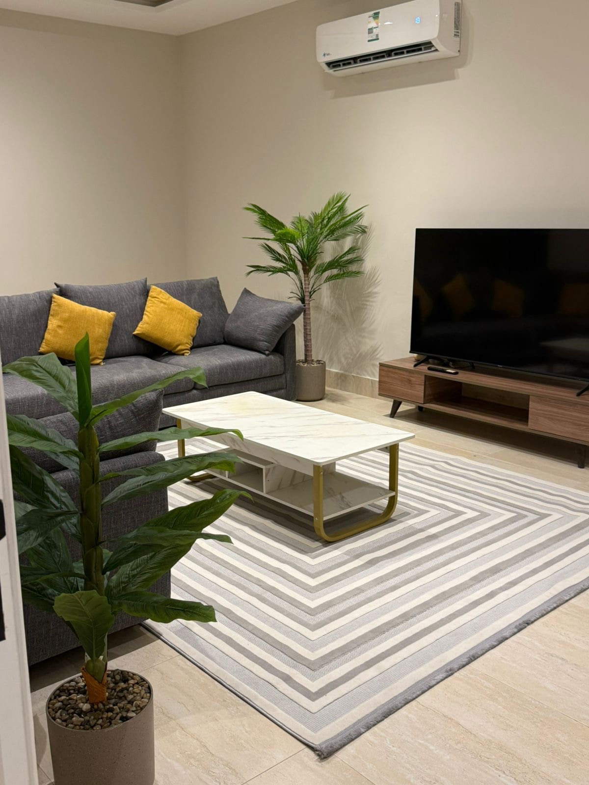 Ministry of Tourism Permit Number: 50033592 Elegant and quiet apartment with self check-in It consists of a room with a master bed, a living room, a kitchen, a 65-inch smart screen, Internet, and a bathroom There is a shared pool and children's games Close to a commercial street with all services 5 minutes from King Fahd Causeway 15 minutes from Dhahran Mall and Khobar Waterfront The unit is cleaned after each guest leaves