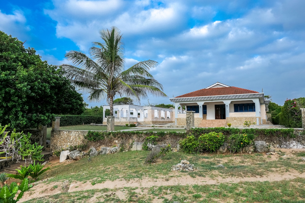 This beachfront cottage on Kenya’s South Coast offers rustic charm and ocean views, perfect for couples, friends, or families. Located near the Kongo River and Diani, it includes a private upper-level space and shared beachside lounge. Please note: there's no running water due to the remote location. Guests will need to buy water for personal use. We sincerely apologize for this. An outdoor washroom is nearby, and the beach is just steps away from the home for our guests to enjoy.