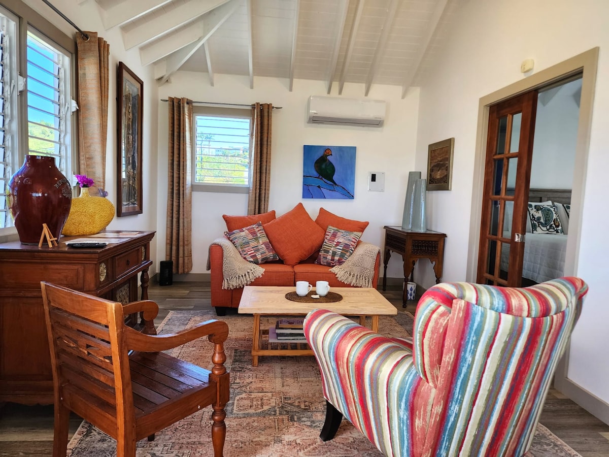 This breezy and bright one-bedroom villa includes a huge patio that overlooks the Caribbean, elevated ceilings and easy access to the beach. Enjoy a stocked kitchen, open living area, gorgeous bedroom (AC in the bedroom), updated bathroom, and pool for a taste of Antiguan living! Certified by the Ministry of Tourism. ***Please note: Antigua requires passports to be valid 6 months beyond your departure date.***