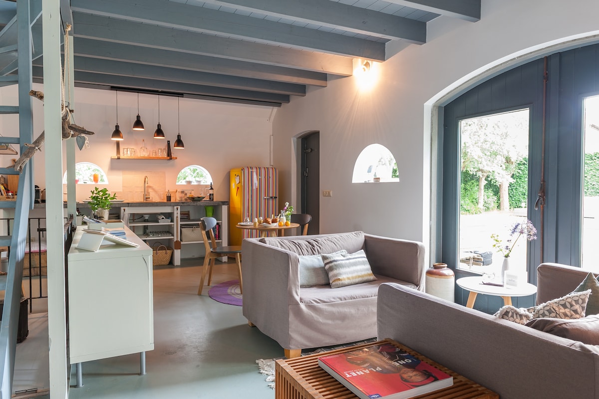 Maasbommel is located in the beautiful rural Land van Maas en Waal in recreation area De Gouden Ham, on the Maas. Here you can bike, hike, swim, rent a boat, eat out, bowl, water sports, etc. The former cowshed is now a cozy space with a spacious bedroom, walk-in shower, sitting area, TV, fully equipped kitchen. Our apartment has a wonderful view of the large garden. Next to the private entrance is a garden table with chairs to enjoy the sun.