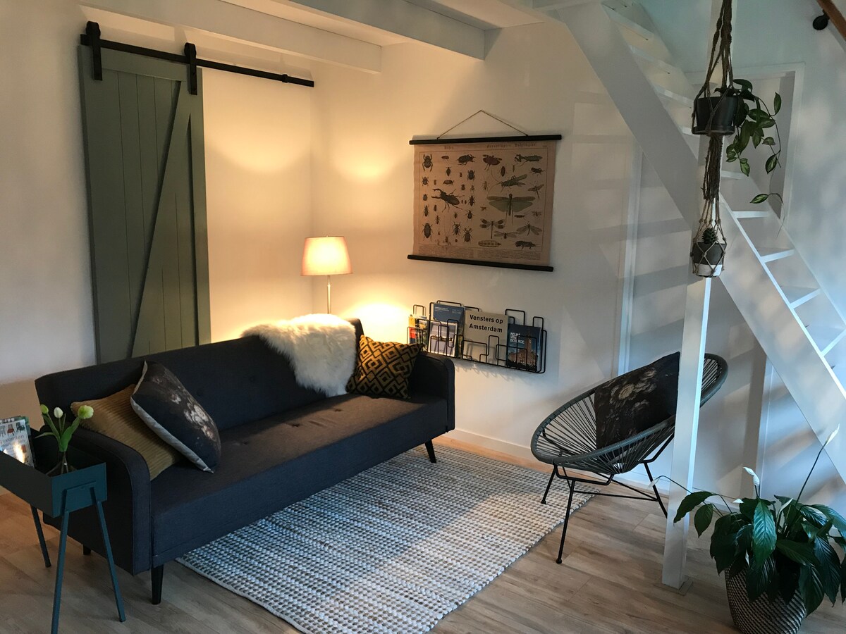 In the old center of characteristic and unique Broek in Waterland in a barn rebuilt in 2017 behind the farm. Entirely private home with access (self check-in). Split-level with private garden. Downstairs (24 m2) is the living room with sofa, mini kitchen, dining area and separate bathroom and toilet. On the loft is the bedroom with double bed, plenty of closet space, hang and lay. WiFi available. There are two bicycles (Veloretti) for rent, 10.00 per bicycle per day.