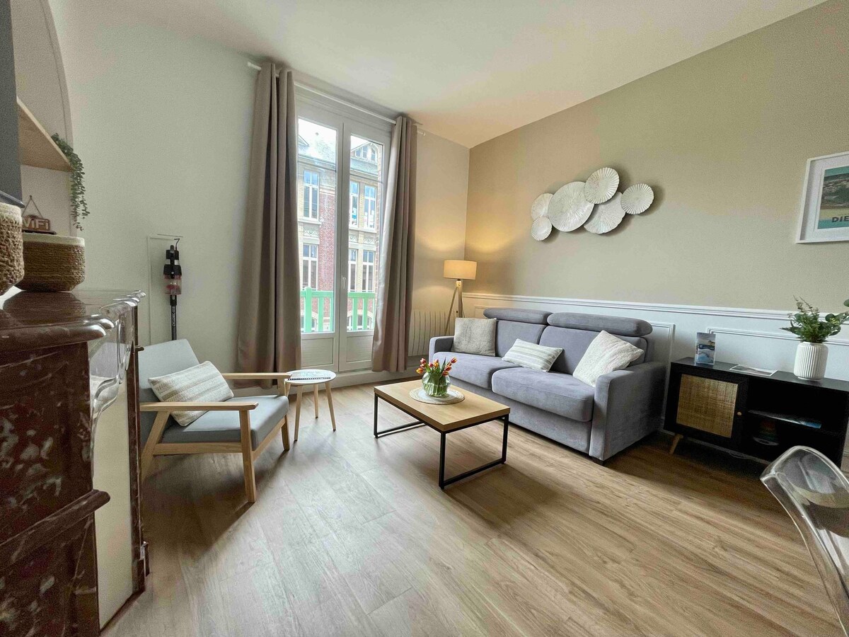 Premium Location: 📍 Located in the city center, on the main street of Dieppe. 🏖️Just a 150-meter walk from the beach. 🌸 Green and meticulously maintained condominium. Access Facilities: 🚗Free parking 100 m away 🔑Secure access to the apartment via badge 👉A room with a cocooning atmosphere, equipped with a TV. 👉Fully-equipped kitchen 👉Spacious bathroom 👉Elegant living room with oak parquet Rules: No smoking No pets Respect for calm, condominium