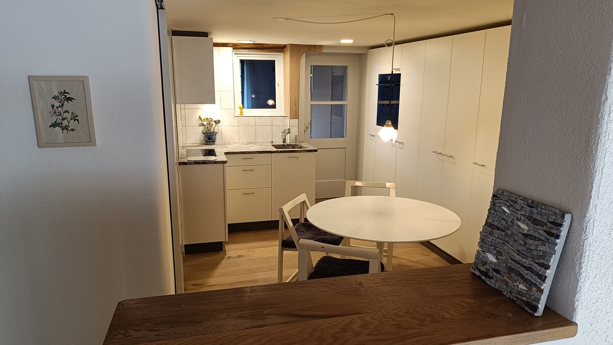 This accommodation offers you relaxation in a unique setting in the old town of Diessenhof on the Rhine. Sleep under 700-year-old oak beams in a newly renovated apartment, equipped with a bathtub with whirlpool function, fully equipped kitchen for self-catering as well as a washing machine/dryer. Double bed (180 x 200 cm), sofa bed (160 x 200 cm) -> for 3rd person +40Fr.! Bicycle storage in the basement, parking in the area. Train station, various restaurants and the Rhine are within walking distance.