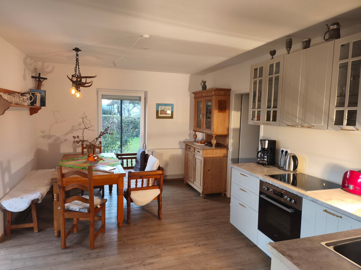 Our bright, charming apartment in Pfronten accommodates up to 5 guests and offers a spectacular view over the rooftops of Pfronten and the Allgäu mountains. Ideally located for exploring Neuschwanstein Castle as well as numerous ski and hiking areas. Start your day with breakfast on the balcony while enjoying the panoramic mountain views – the perfect retreat for nature lovers and anyone seeking relaxation.
