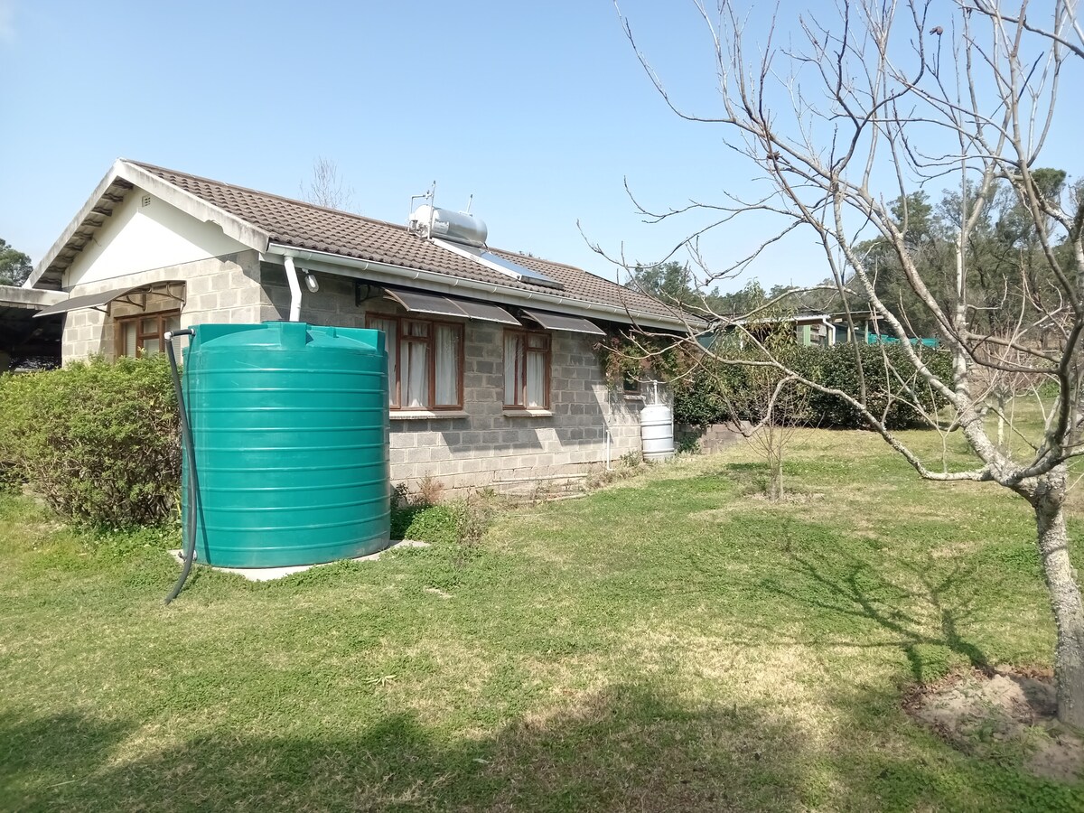 Bramber Cottage is a modern self-catering accommodation set in a tranquil , beautiful park-like garden with mature trees. It is easily accessible by any vehicle. The property is located on a major road and is fully fenced with an electrically operated gate. It is within a walking distance to The Edge, The Eco Shrine and to several beautiful walks. The property is entirely independent from Eskom power supply.