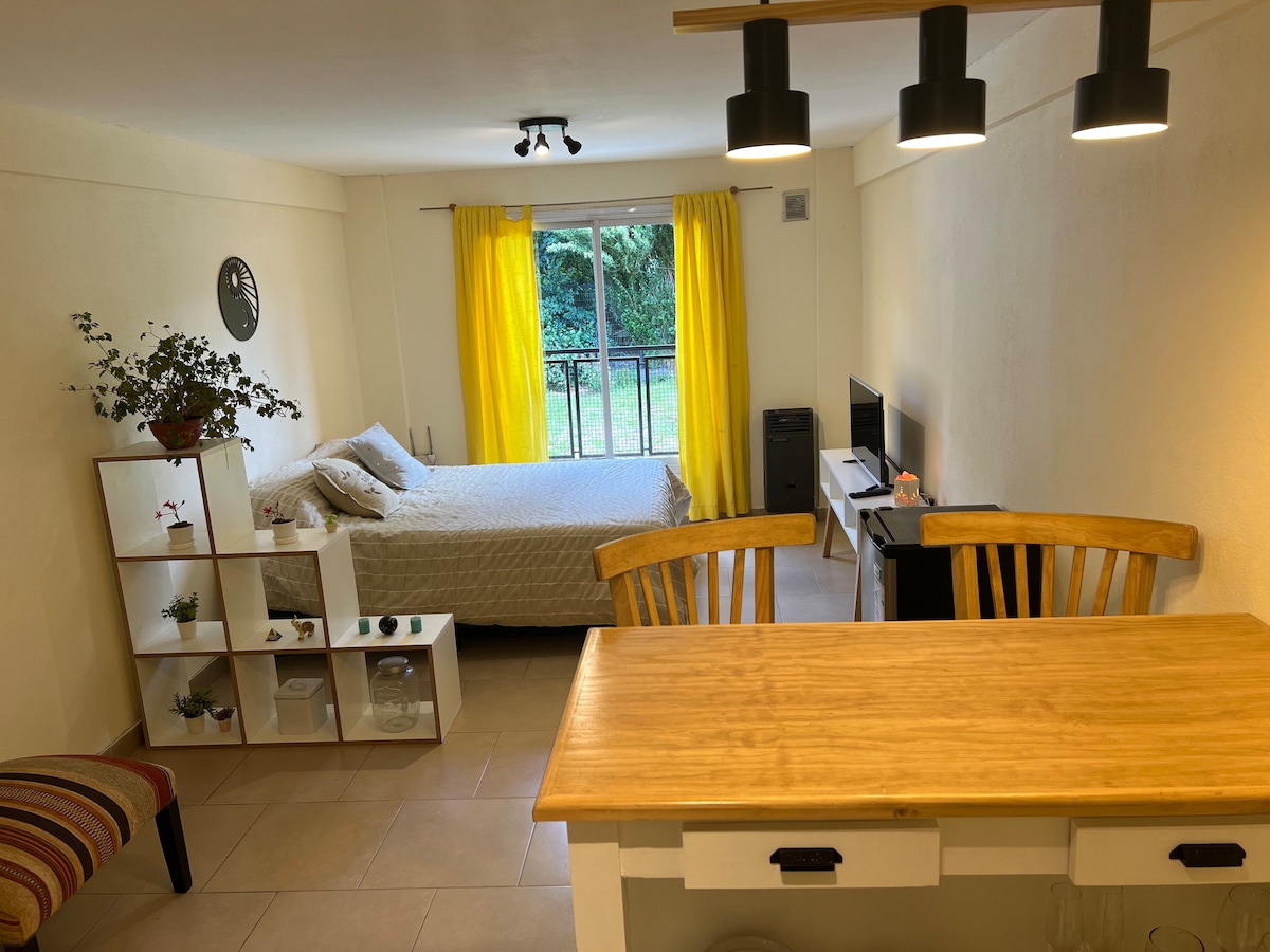 Studio apartment that offers natural light, good orientation and tranquility. Its location is privileged, as it is accessed directly from National Route 40, 500 meters from the mouth of the Limay River and access to Lake Nahuel Huapi. Within a 500m radius, there are service stations, restaurants, and a supermarket. 15 km from downtown San Carlos de Bariloche. It has a parking space inside the property.