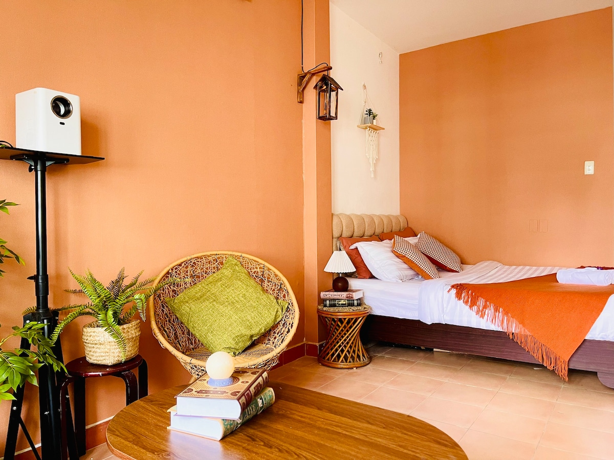 SkyLush @ Cozinema offers three unbeatable features: 1. Prime Location: Heart of HCMC, 1 min to Bui Vien Street and 5 mins to Ben Thanh Market. Surrounded by cafés, local eats, and public transports right at your doorstep. 2. Skyline & Parkfront Views: Enjoy a breezy balcony overlooking 23/9 Park, blending lush greenery with stunning city skyline lights at night - the perfect balance of calm and vibrant. 3. Cinematic Retreat: 100" 4K projector & Dolby 5.1 audio for ultimate relaxation.