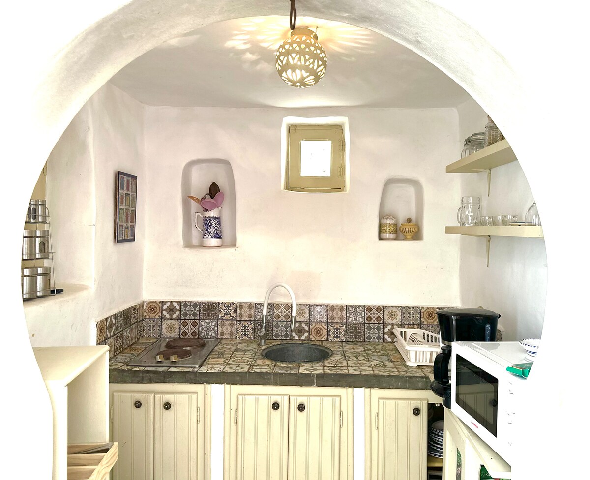Immerse yourself in the comfort and charm of this place in DJERBA, perfect for a couple or a group of friends up to four people. Nestled in a quiet area, it offers a cozy bedroom, a modern living room and a well-equipped kitchen to cook delicious meals. As a passionate Airbnb host, I'm here to welcome you with joy and ensure you have a memorable stay. With the option to pick you up from the airport on the first day 😉