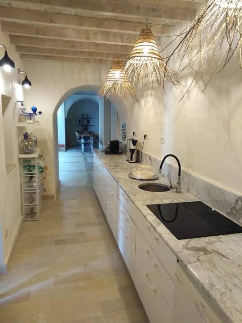 A traditional, well kept, more than two centuries old tunisian djerbian home, restored in espect to it's original character. This house can accomodate eight people. The rooms are spacious, charming and cozy, with a bathroom in each one. The poolside is very pleasant either by day or by night when all the the lights are on.