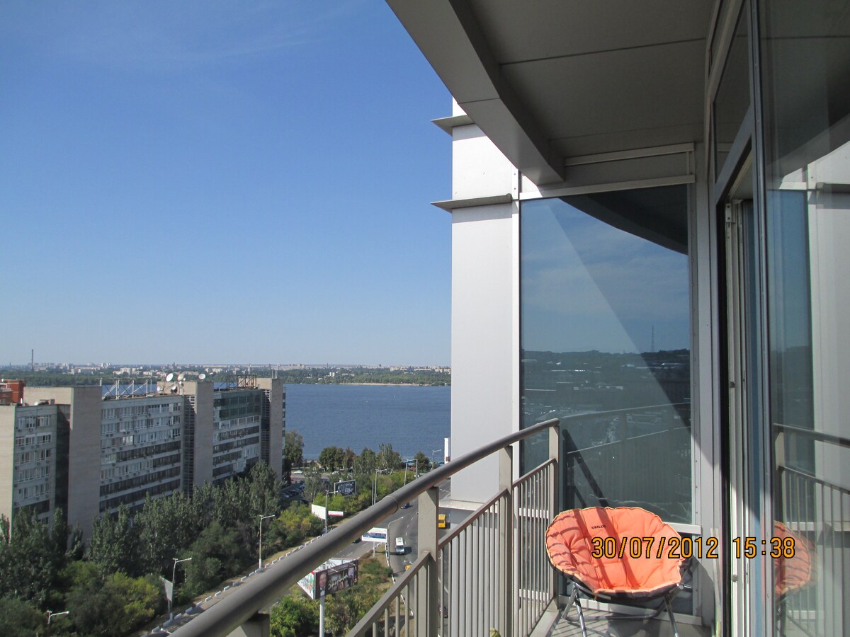 The apartment with 1 bedroom Chocolate in Most City, in the heart of the city. Romance, luxury, balcony, River View. Very nice and cozy! And all this in the most fashionable and modern house in the center of the Dnieper - in Most City! The apartment is located on the 8 (14)th floor, there is a full kitchen, a spacious hall and a cozy bedroom. In our house - hour reception and security, 3 elevators, marble foyer. Paid parking -150 meters from the house (40 hryvnia per day).
