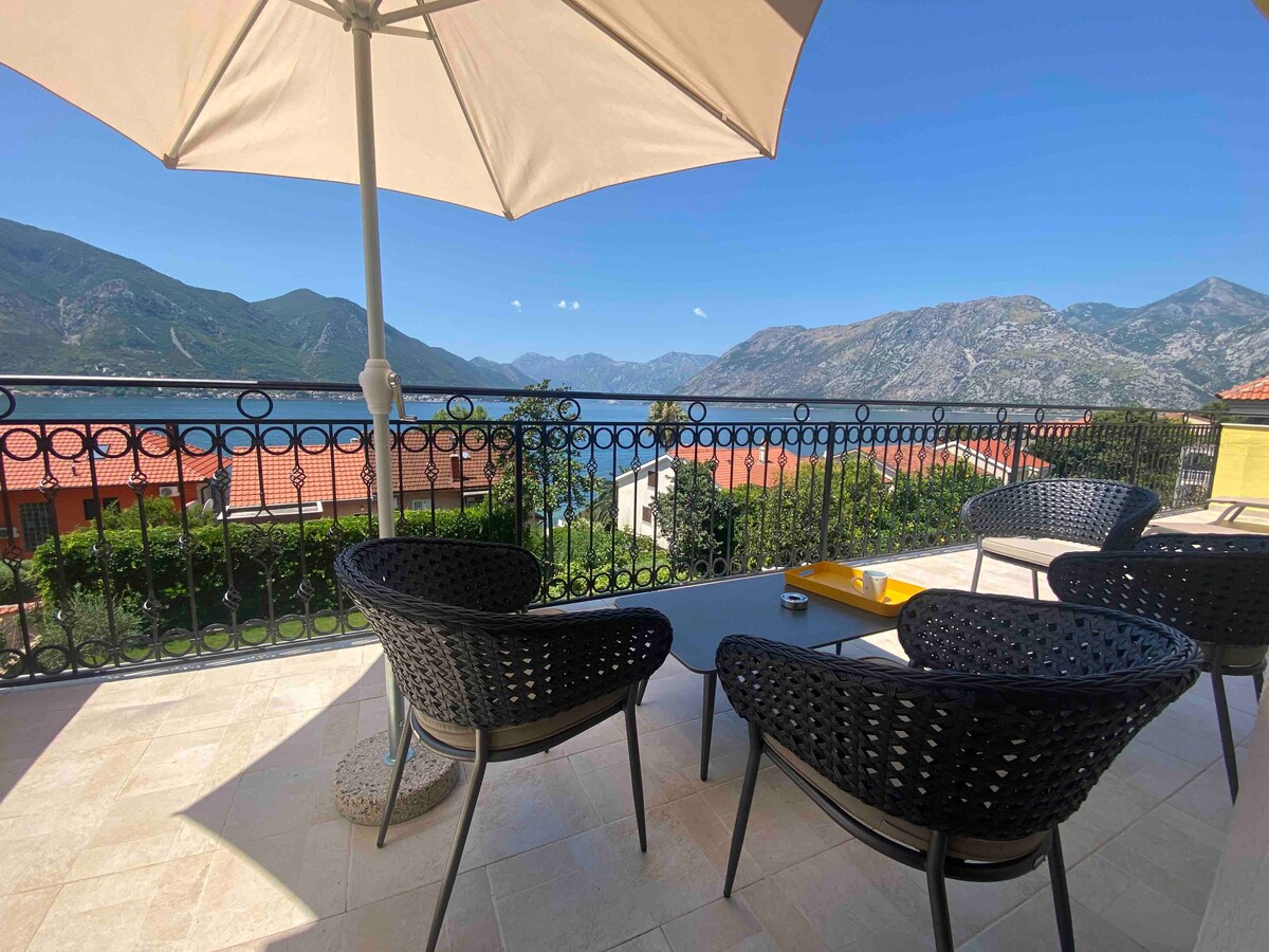 If you want to enjoy the spectacular view of the Boka Bay while you drink your morning coffee or a glass of white wine watching the best sunset on your own terrace, this is the perfect place for you. Just 5 minute walk from the sea promenade, and only 4 km from Old Town Kotor - the perfect location to enjoy the best Kotor has to offer.