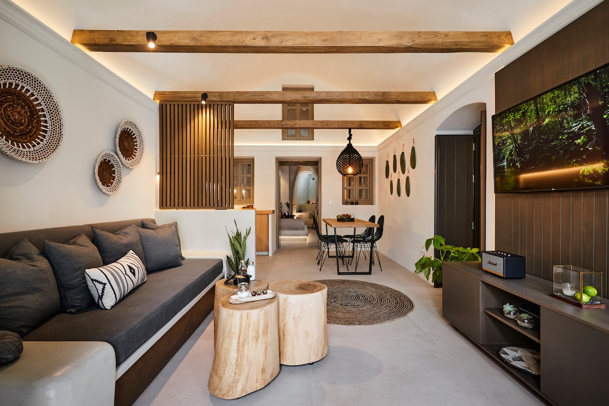 This thoughtfully designed 2-bedroom villa offers the perfect setting for a relaxing and unforgettable stay. Enjoy your own private outdoor hot tub and a panoramic terrace with breathtaking sea and sunset views—an ideal spot to unwind at the end of the day. Perfect for families or small groups, the villa accommodates up to four guests with 1 queen-size bed and 2 single beds across two separate bedrooms.