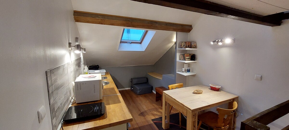 Discover a charming apartment, nestled in the attic of an old factory building. Designed for 2 people, this accommodation combines industrial character and modern comfort. There is a cozy bedroom, a fully equipped kitchen, air conditioning for a pleasant stay in any season, as well as Wi-Fi to stay connected. Located close to a bus stop, with free parking right in front, it is ideal for discovering the region with ease.
