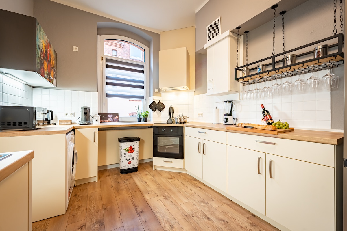 🏡 Exclusive penthouse with wooden beams, 3 bedrooms, 2 bathrooms & 2 balconies Welcome to our stylish penthouse in a refurbished shoe factory. High historic wooden beams, floor-to-ceiling windows & two balconies give the apartment special charm. ✨ Highlights: ✔ 3 bedrooms & 2 luxurious bathrooms (bathtub & rain shower) ✔ Modern kitchen with full equipment ✔ 300 Mbps Wi-Fi & Smart TV ✔ Washer & Dryer ✔ Elevator & free parking 🔑 Perfect location near the Elbe & tram!