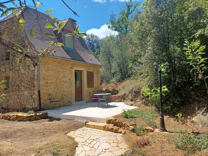 Beautiful cottage with beams and exposed stone just renovated November 2019 Parking and entrance into private courtyard garden with covered eating terrace and your very own jacuzzi. French doors into house The kitchen is fully equipped, the lounge has very comfortable furniture and pretty French antiques, The river vezere is only 50 metres on our own land, excellent for canoeing, wild swimming and picnicking 2 minutes by car to a stunning medieval village 25 minutes from center of Sarlat