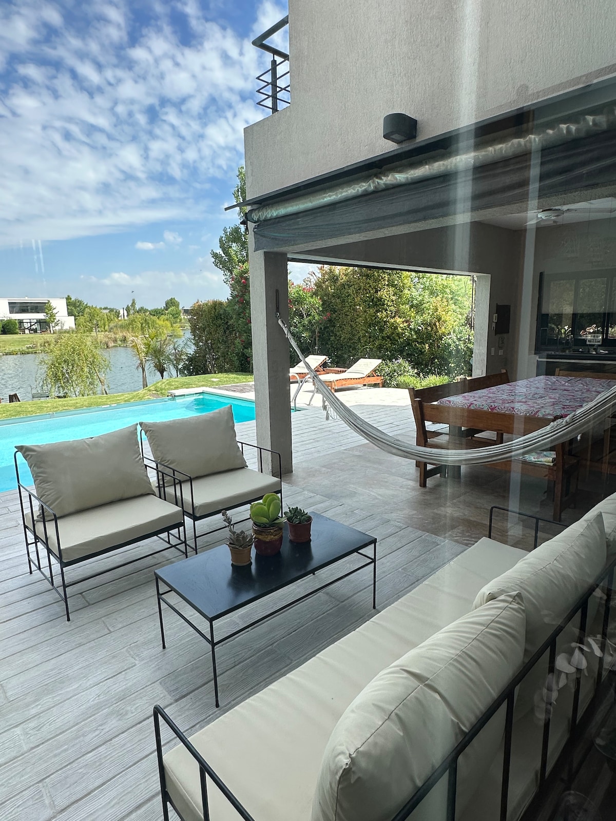 Ideal House in La Comarca Gated Community, in the Nordelta area. Perfect for relaxing! It has 3 spacious bedrooms, 1 of them en suite. All have air conditioning and access to the terrace. It has a large gallery with a covered grill, a large garden and a pool with lights. The house is very well equipped, very comfortable and cozy. It has a washing machine, dishwasher and everything to make your stay unforgettable! It is very close to shopping centers, supermarkets and restaurants.